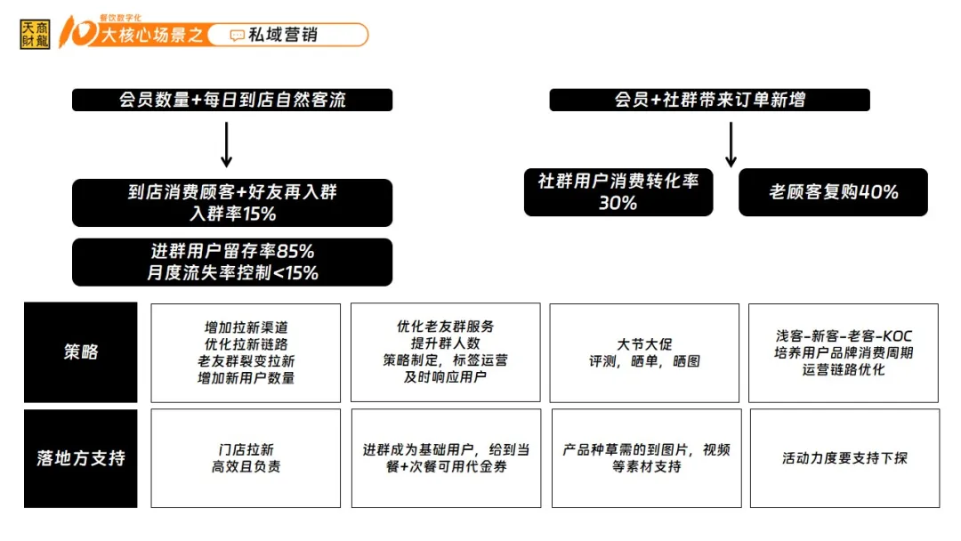 燒烤業(yè)態(tài)本身具有很強(qiáng)的社交屬性,而這個(gè)特點(diǎn)恰恰是私域營(yíng)銷(xiāo)的重要基礎(chǔ)。因此,餐飲人一定要注重“ 社交貨幣+數(shù)據(jù)資產(chǎn)” 的雙輪驅(qū)動(dòng),通過(guò)天財(cái)商龍燒烤業(yè)態(tài)解決方案,不斷沉淀會(huì)員資產(chǎn),并通過(guò)各種小程序營(yíng)銷(xiāo)活動(dòng)提升社交屬性,再配合精準(zhǔn)營(yíng)銷(xiāo)達(dá)到提高私域流量轉(zhuǎn)化效率、促進(jìn)復(fù)購(gòu)的目的。