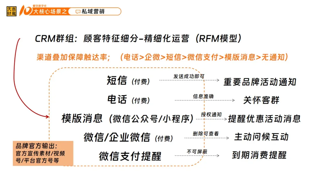 通過(guò)小程序的信息沉淀,會(huì)員信息可以在天財(cái)商龍會(huì)員營(yíng)銷(xiāo)系統(tǒng)中進(jìn)行分組,并實(shí)現(xiàn)精細(xì)化運(yùn)營(yíng)。這里要強(qiáng)調(diào),渠道的疊加保證的是觸達(dá)率。