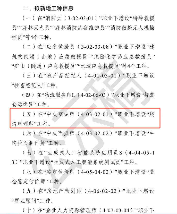 首先,今年5月,在國(guó)家人社局擬新增17個(gè)新職業(yè),42個(gè)工種中,“燒烤料理師”赫然在列,這也意味著相關(guān)從業(yè)者未來可以“持證上崗”。
