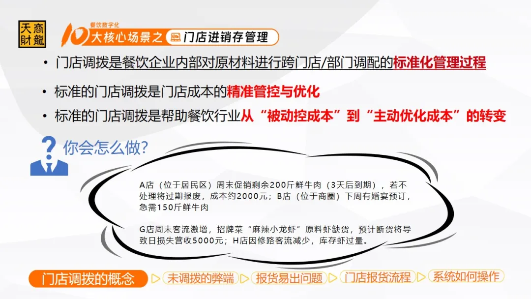如果您需要本次課程的詳細課件,可以關(guān)注天財商龍官方微信,回復關(guān)鍵詞“門店調(diào)撥”獲取。